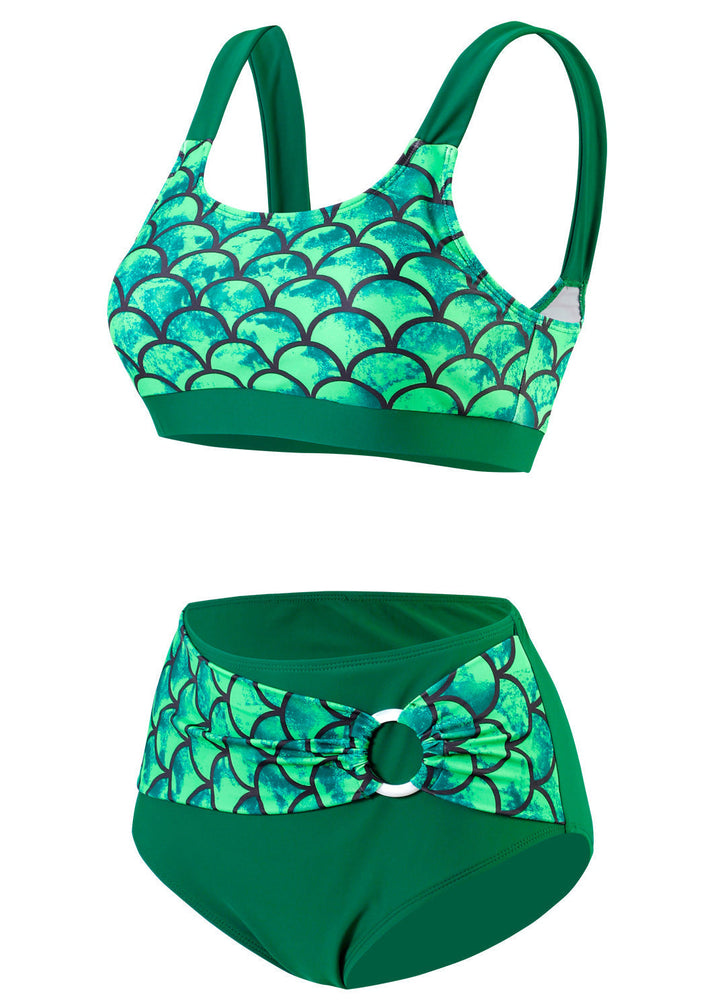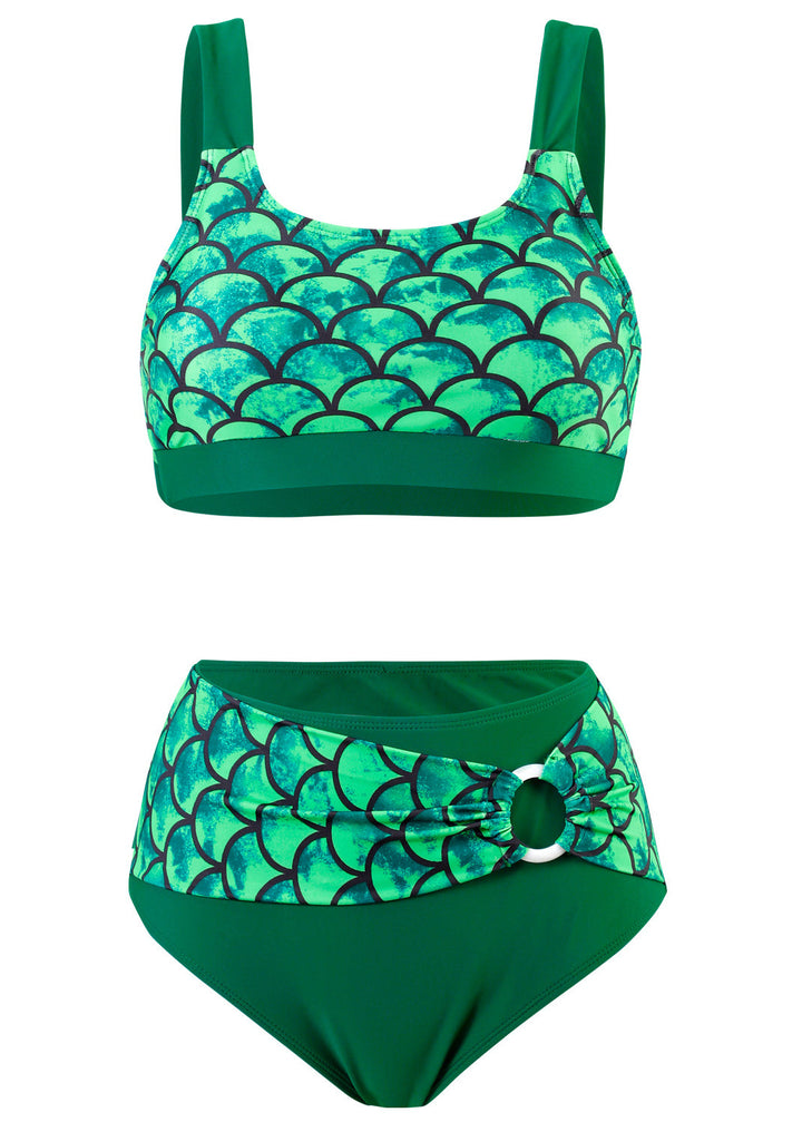 European And American Bikini High Waisted Fish Scale Print Swimwear Set